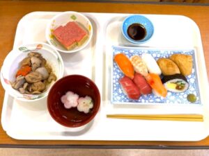 開会宣言と応援合戦の後、ラジオ体操で体をほぐしてから玉入れやひも繋ぎ、風船送りの競技を実施。どの競技も白熱して、笑顔が溢れる楽しい運動会となりました。 お昼もお寿司🍣や蟹の重ね蒸しなどのお祭り特別メニューが並びました。